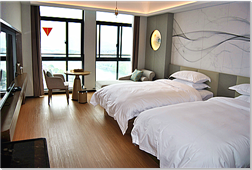 酒店客房寬敞舒適每個房間均配有獨立衛(wèi)生間、電視、空調(diào)和無線WiFi。均配有中央熱水器,24小時供應熱水,床單被套一客一換。
