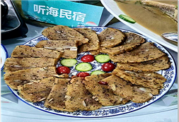 咫尺,移步即到海,海浪沙灘盡在腳下;也晚躺在床上數(shù)星星,枕聽(tīng)海浪撲打聲。民宿共有10個(gè)面朝大海的客房,3個(gè)餐飲包間和一個(gè)公共大廳,民宿漁家海鮮餐和錫餅菜已成為當(dāng)?shù)仄放铺厣惋嫛?/span>